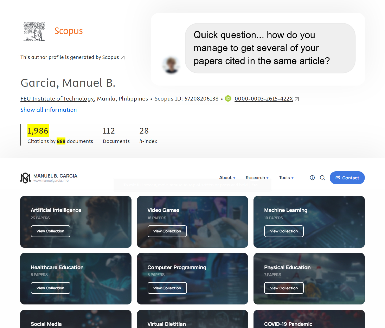 In fact, I've just launched a new section on my website called Research Collections (creative name, I know) where I've grouped together sets of my papers around specific topics. Think of it as the Netflix playlist for my academic work. You can browse them, jump into a series, or binge-read if you're feeling brave.